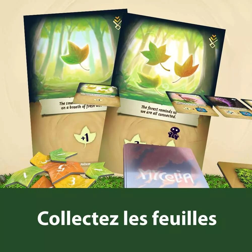 Dans Mycelia vous incarnez un peuple de champignons, le printemps arrive bientôt et la forêt n'est pas prête ! À vous de préparer la forêt pour le renouveau du printemps en retirant les gouttes de rosée du matin. Vous devez être le premier joueur à débarrasser les gouttes de rosée matinale de votre partie de la forêt. Dans ce jeu de deck-building récoltez des feuilles de la forêt pour engager les créatures de la forêt et utiliser leurs pouvoirs pour retirer la rosée du matin. Soyez plus rapide et plus stratégique que vos adversaires et faites les bons choix pour comprendre les mystères de cette forêt et préparer l'arrivée du printemps, mais attention il peut pleuvoir sur la forêt et rajouter des gouttes de rosée dans votre partie de la forêt. Le jeu vient avec une variante solo qui se joue dans une atmosphère de nuit... Mycelia vient également avec une extension plus stratégique qui apporte des nouvelles cartes et de nouvelles mécaniques de jeu. Un jeu jouable de 1 à 4 joueurs dès 9 ans et pour des parties de 45 minutes environ.