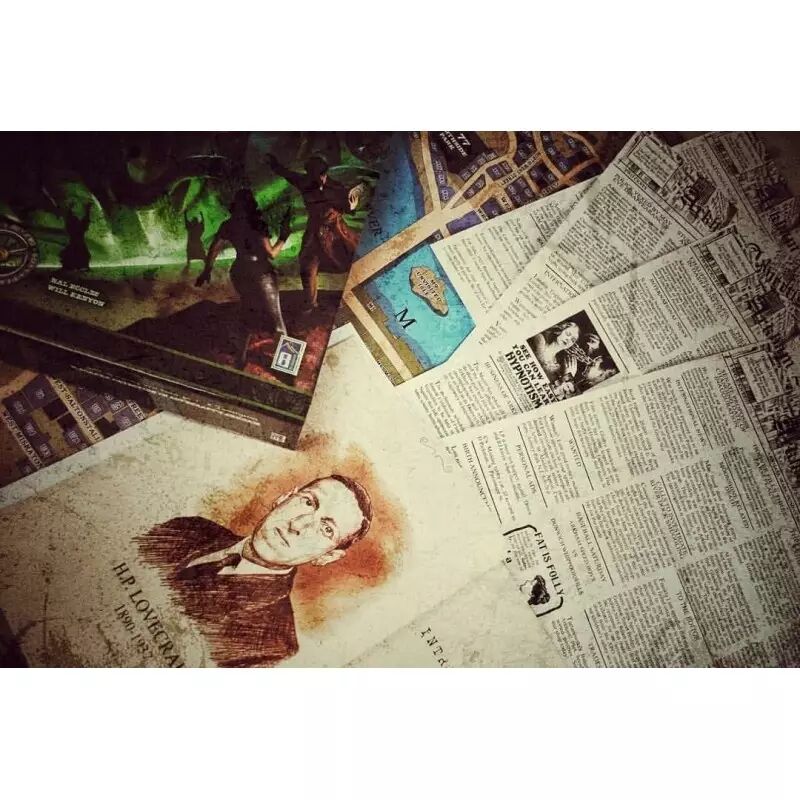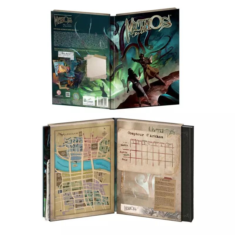 La boitier-livre contient un livre des règles, le livre des cas (les enquêtes, par où vous commencez, et les différents chapitres avec les rencontres possibles), une carte grand format d'Arkham, des journaux de la ville plein d'informations, un bottin téléphonique, des cartes (pour gérer la progression) et un "time tracker".