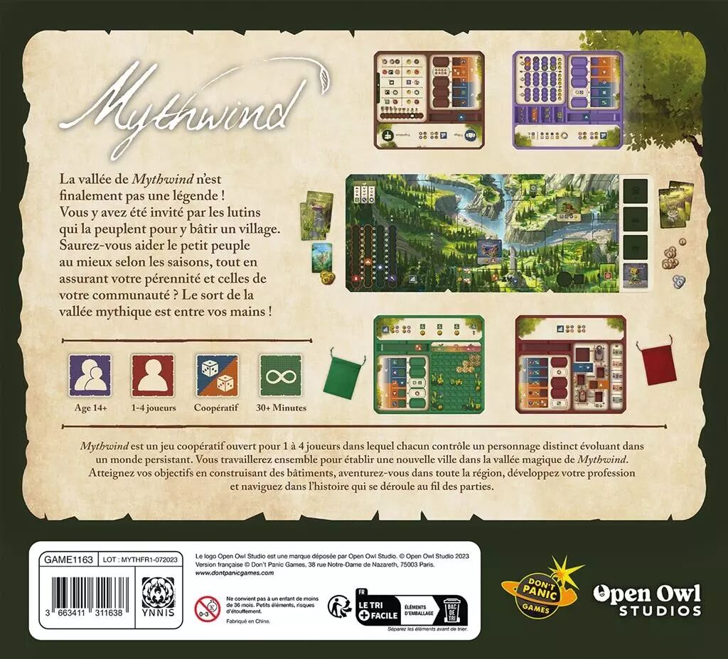 Mythwind est un jeu coopératif pour 1 à 4 joueurs. Lors d’une partie, vous travaillerez en équipe pour développer un nouveau village dans la Vallée magique où vous avez eu l’honneur d’être invité par les lutins.