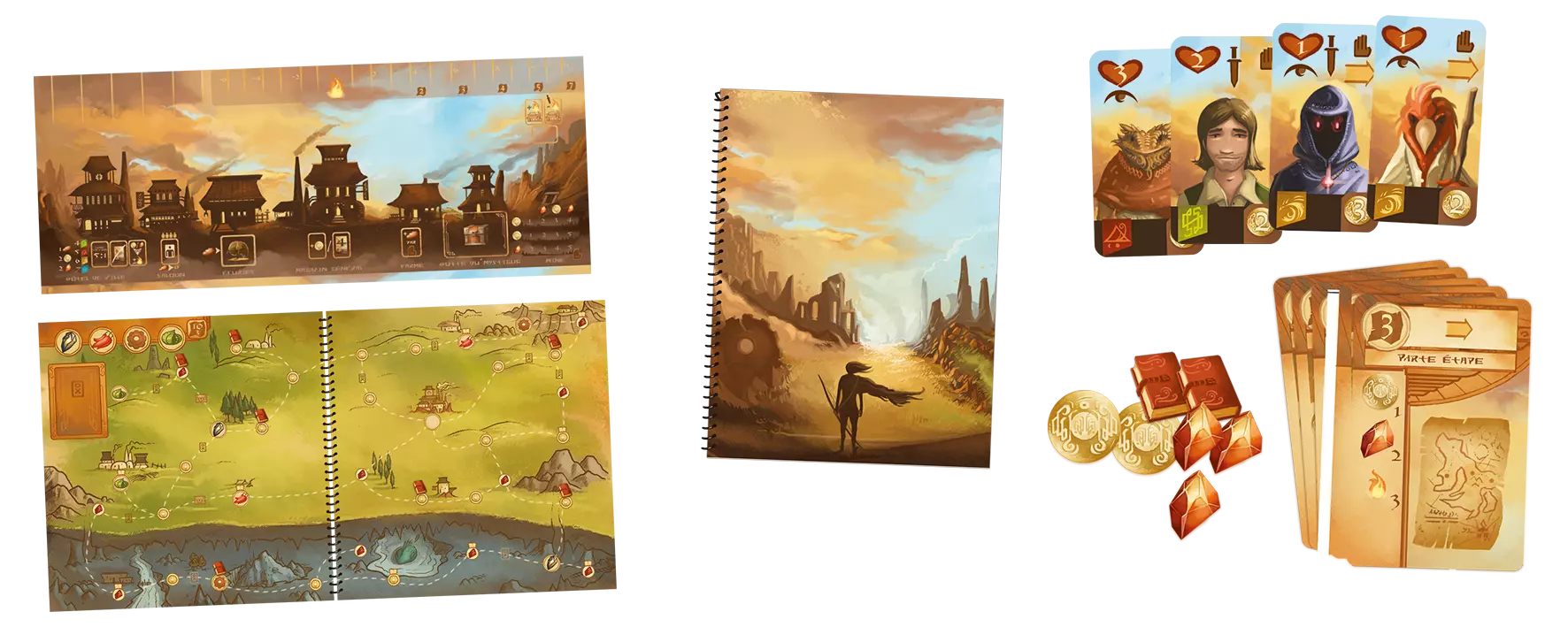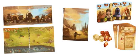 Dans Near and Far de Ryan Laukat, vous pouvez explorer de nombreuses mappemondes différentes à la recherche de la Dernière Ruine. Recrutez des aventuriers, recherchez des trésors et rivalisez avec les autres joueurs pour devenir le voyageur de légende. Vous devez collecter nourriture et équipement en ville pour les longs voyages, en veillant à ne pas oublier d'affuter vos armes pour combattre les bandits, les statues animées et les robots rouillés! Parfois, au cours de vos voyages, vous rencontrerez quelque chose d'unique et un de vos amis lira ce qui vous arrive dans un livre d'histoires, vous laissant le choix de réagir, créant ainsi une nouvelle épopée mémorable à chaque fois que vous jouez.