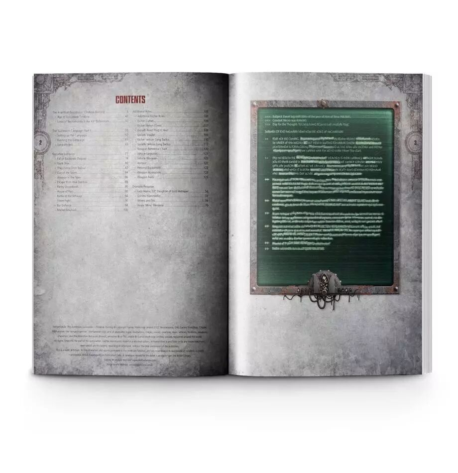 - The Great Darkness: Details of the events that unfolded on Necromunda following the opening of the Great Rift, which split the Imperium in two and caused the great heat sinks in the heart of each hive city to cool. Includes a full timeline of the Age of Succession, and a roster of Lord Helmawr's children (legitimate and otherwise).
