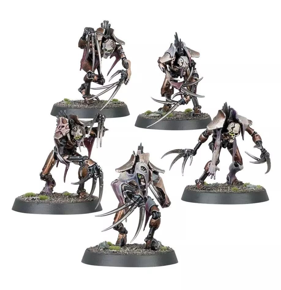 Les Dépeceurs poussent des cris stridents en se jetant sur l’ennemi, toutes griffes dehors. Infectés par l’atroce virus du dépeceur, ces Nécrons dégénérés tentent de se nourrir de la chair de leurs ennemis massacrés, du sang coulant de leurs silhouettes mécaniques tandis qu’ils tentent d’étancher leur soif permanente.