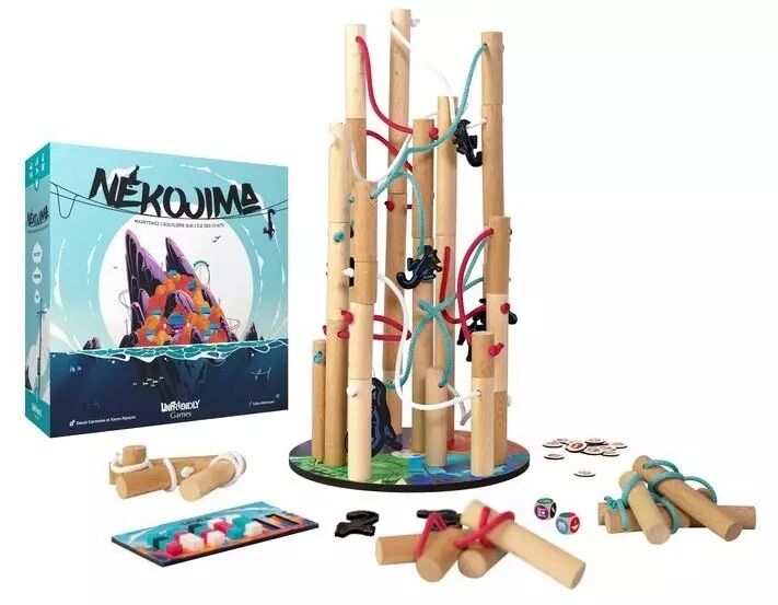 Nekojima est un jeu d’adresse et d’équilibre en bois original dans lequel il faudra manipuler habilement avec ses 2 mains des éléments appelés Denchuu (poteaux électriques). Durant la partie, les Denchuu sont placés sur le plateau et empilés les uns sur les autres, ce qui va apporter de la dimension et de la hauteur au jeu. Il faut faire preuve d’observation et de dextérité pour placer les Denchuu et les joueurs retiennent leur souffle pour ne pas faire tomber la structure.