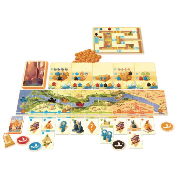 Lorsque les offrandes sont terminées, les navires retournent sur le Nil pour voyager en sens inverse et ramasser de nouveaux artefacts. Une fois que la pioche des monuments est vide, le joueur ayant le plus de points de victoire gagne !