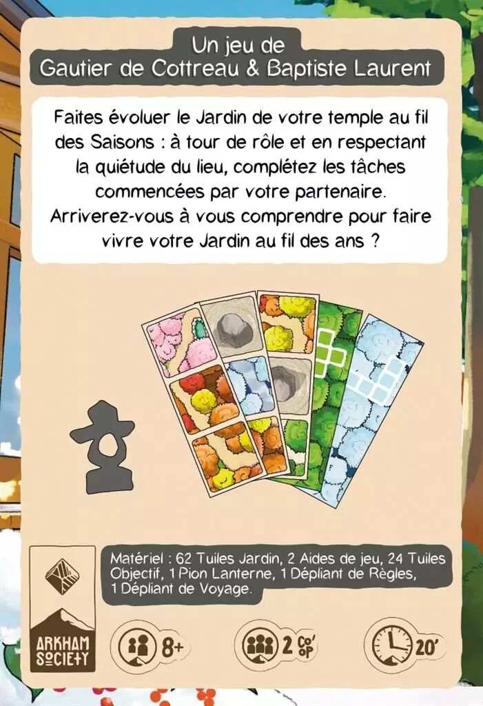 Plongez dans l'univers des jardins zen avec Niwashi, un jeu où chaque partie vous invite à imaginer des compositions harmonieuses. Avec son matériel épuré et ses cartes illustrées, l’expérience visuelle est aussi apaisante que stimulante. Laissez la beauté minimaliste des jardins japonais guider votre créativité.