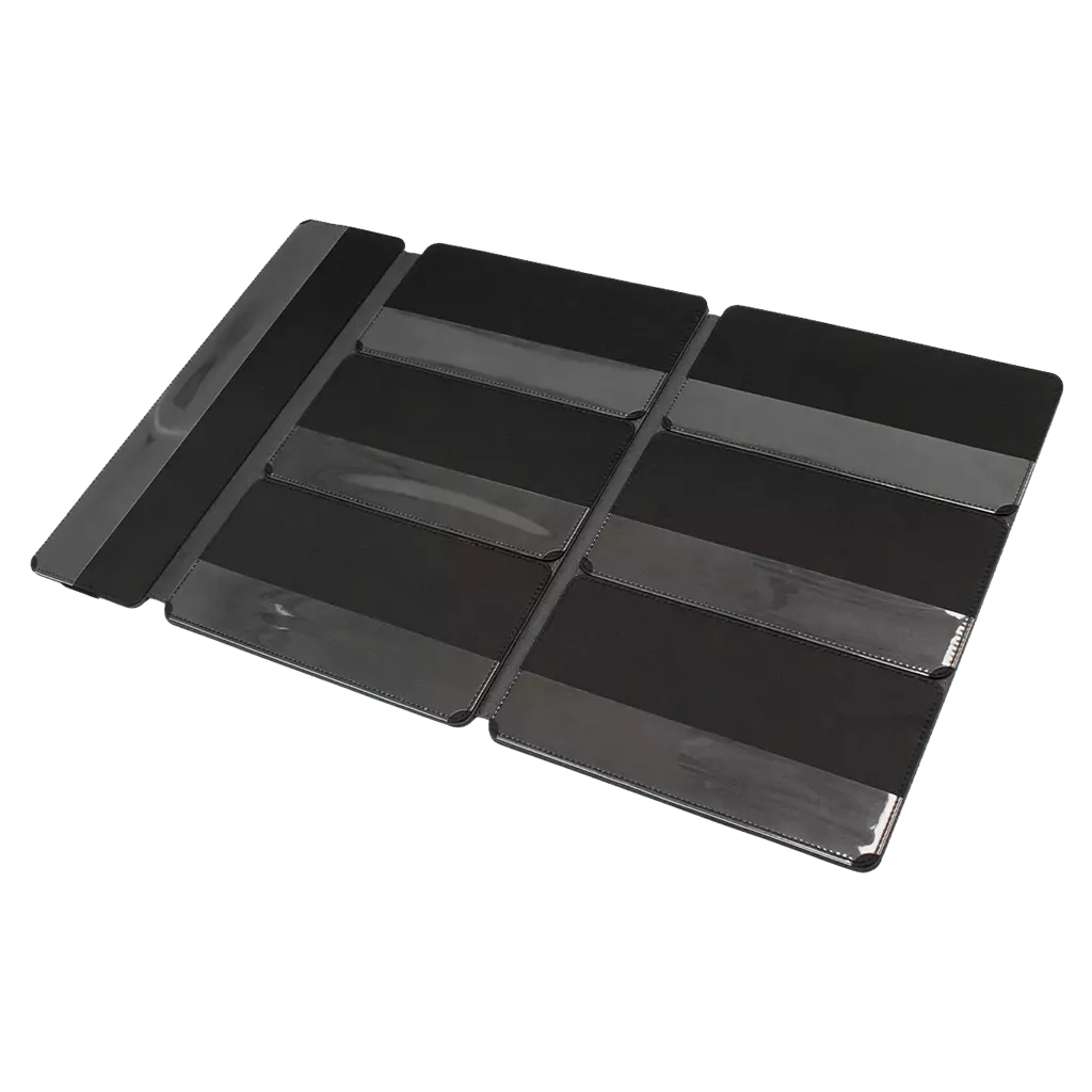 Dans le bus, le train ou même en étant assis sur le dos d'un dragon volant, le NOMAD permet de garder les cartes dans le jeu et sur le tapis de jeu. La large bande élastique maintient le NOMAD plié et maintient votre jeu en place pendant l'utilisation. Des poches transparentes, solides et élastiques permettent de s'assurer que vos cartes ne quittent pas le champ de bataille involontairement. Utilisez NOMAD pour jouer à l'extérieur, même par temps venteux et lorsqu'il n'y a pas de table de jeu à proximité. Besoin de passer à autre chose ? Sauvegarde rapide ! Il est facile de déplacer votre jeu et de le sauvegarder pour plus tard - les cartes et les pions restent sur le tapis de jeu. Disponible en noir, vert forêt et bleu nuit.