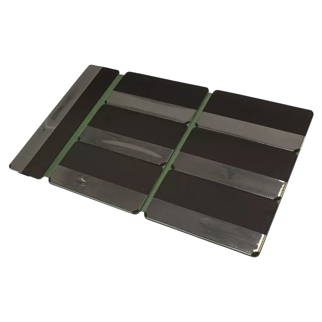 Dans le bus, le train ou même en étant assis sur le dos d'un dragon volant, le NOMAD permet de garder les cartes dans le jeu et sur le tapis de jeu. La large bande élastique maintient le NOMAD plié et maintient votre jeu en place pendant l'utilisation. Des poches transparentes, solides et élastiques permettent de s'assurer que vos cartes ne quittent pas le champ de bataille involontairement. Utilisez NOMAD pour jouer à l'extérieur, même par temps venteux et lorsqu'il n'y a pas de table de jeu à proximité. Besoin de passer à autre chose ? Sauvegarde rapide ! Il est facile de déplacer votre jeu et de le sauvegarder pour plus tard - les cartes et les pions restent sur le tapis de jeu. Disponible en noir, vert forêt et bleu nuit.