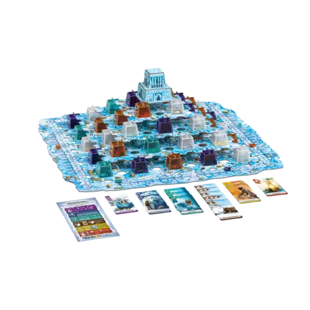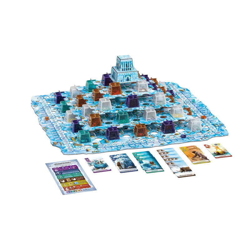 Le cœur du jeu repose sur la gestion des cartes et la construction de votre temple. Des « Sculpteurs de glace » aux « Artisans », chaque carte ouvre des opportunités stratégiques variées. Compléter des carrés 2x2 pour des points immédiats ou viser une collection de cartes pour la fin de partie ? À vous de jongler entre ces dilemmes et de trouver l'équilibre parfait pour dominer vos adversaires.