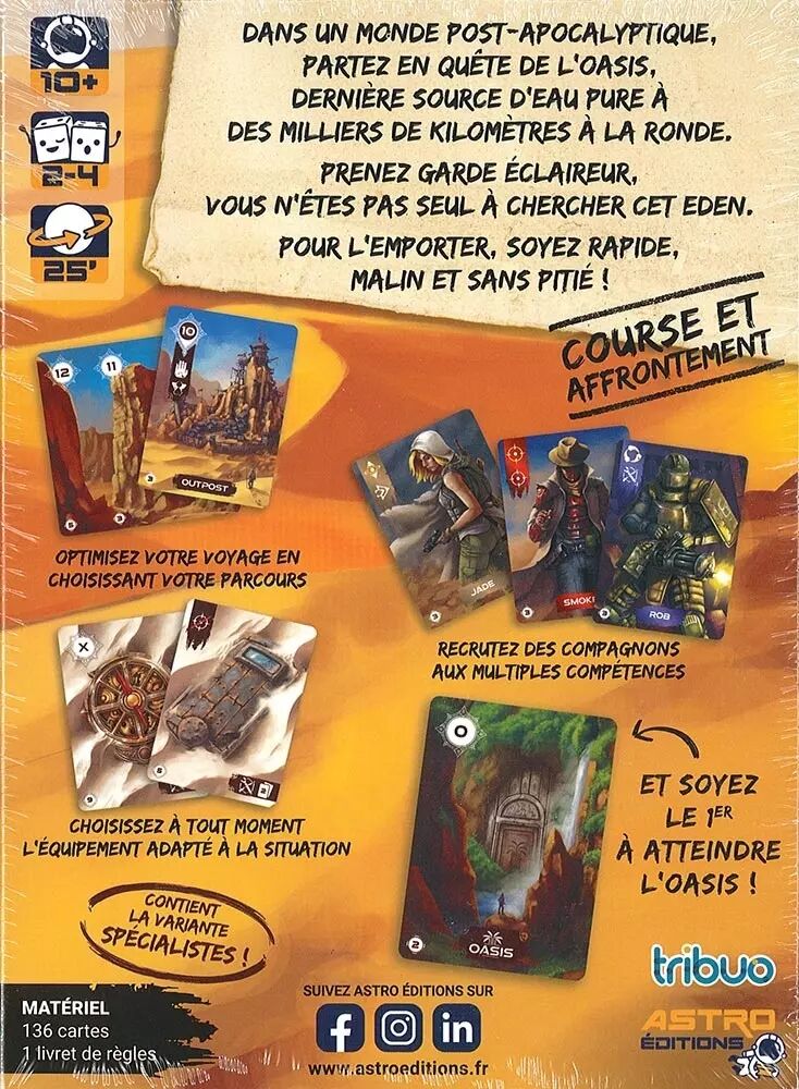 Dans ce jeu de course et d’affrontement sur un thème post-apocalyptique, vous incarnez un éclaireur se battant pour être le premier à atteindre l’Oasis, dernière source d’eau pure à des milliers de kilomètres à la ronde.