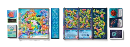 Dans Oceans, vous devez prospérer dans un environnement en perpétuel changement où la nourriture est rare et où les prédateurs rôdent. Vous pouvez développer votre population en fouissant le récif, en attaquant d'autres espèces, ou en gagnant de la population directement dans l'océan. Assurez-vous de faire évoluer vos espèces pour assurer leur survie. À la fin de la partie, vous marquez un point pour chaque jeton Population en votre possession.