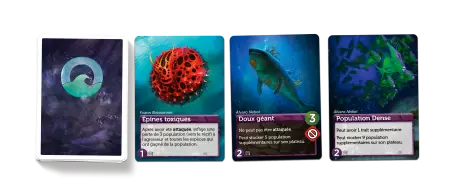 Lors de la deuxième phase de jeu, les cartes Abysses sont débloquées ! Uniques et puissantes, elles peuvent changer le destin de vos espèces mais aussi les exposer à de terribles dangers si elles sont jouées par vos adversaires.