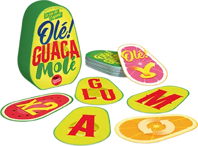 Réf. : LSMOLE01FR Olé Guacamolé est un jeu d'apéro, simple et rapide, dans lequel vous devez trouver des associations de mots sans utiliser des termes qui possèdent l'une des lettres présentes au centre de la table.