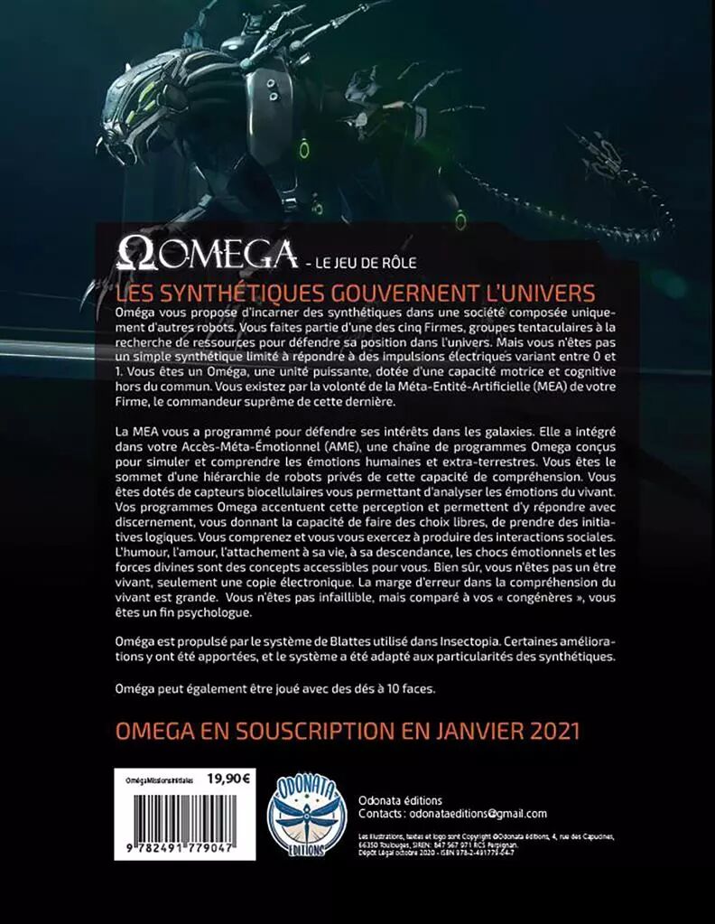 Les joueurs incarnent des machines très abouties capables de comprendre et de manipuler les organiques, humains ou ET, ce sont les Omega. La feuille de personnage est divisée en un soft représentant l'IA et un hard, qui est la forme de la machine. Les joueurs peuvent implanter leur IA dans un châssis Robot, Change forme, Drone, Cyborg ou Droïde.