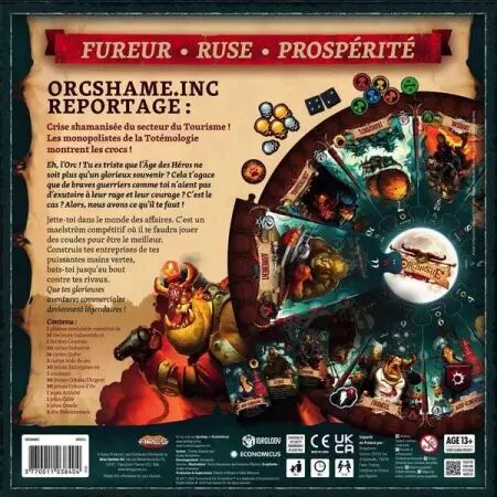 Orconomie est un jeu pour 2 à 5 joueurs qui s’affronteront pour établir des Entreprises dans différents Secteurs Industriels. Les Entreprises sont la principale source de Points de Victoire(PV). Elles génèrent également des Pertes et Profits et aident leur propriétaire à bénéficier des Avantages de chaque Secteur. Les joueurs gagnent 1 PV par Entreprise sous leur contrôle et par Quête accomplie. La partie se termine dès qu’un joueur obtient 11 PV. Ce joueur est déclaré vainqueur de la partie.