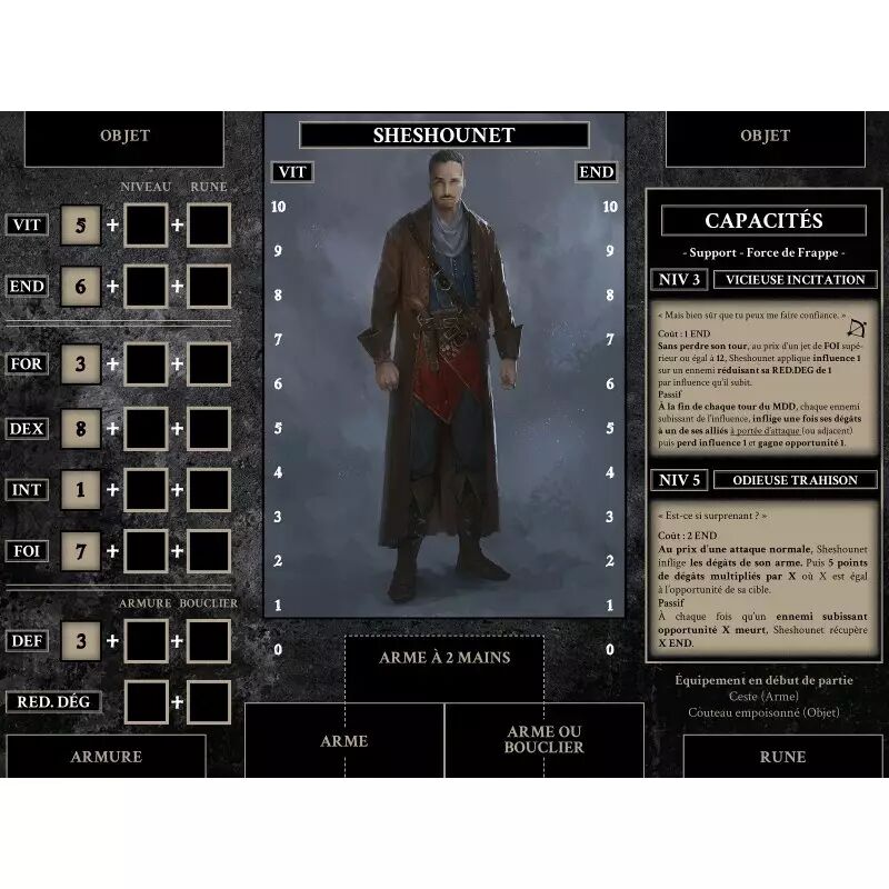 L’Ordre de Veiel est un jeu de coopération se déroulant dans un univers fantasy sombre et complexe. Prévu pour des parties de 1 à 7 joueurs durant 1h-1h30, une équipe d’aventuriers affronte un maître du donjon impitoyable ainsi que ses hordes de monstres corrompus. Vous devrez donner votre maximum afin de venir à bout des tourments de la crypte. Entraide, réflexion et décision seront les maîtres mots de votre excursion.