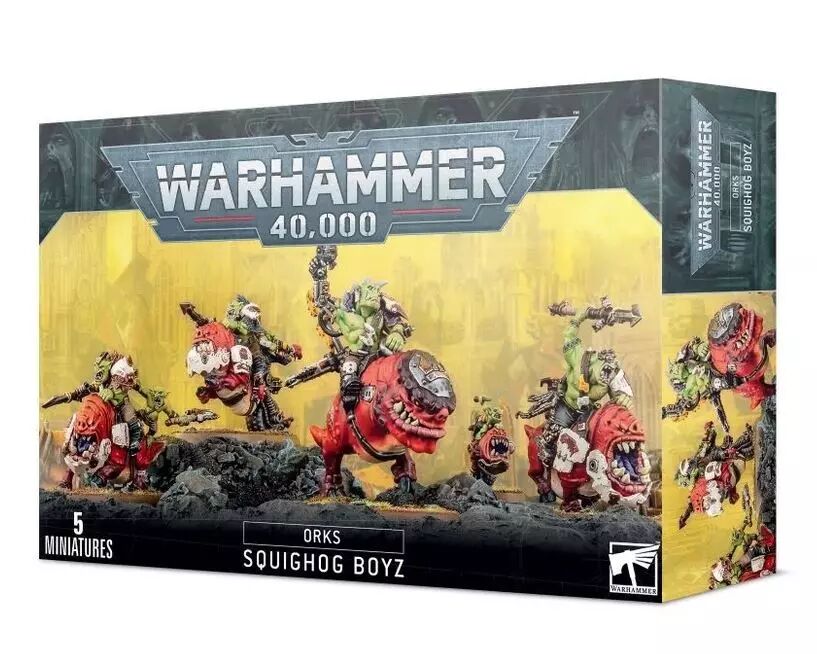 Comme si leurs impressionnantes charges ne suffisaient pas, les Boyz sur Squigliers lancent aussi des kipiks explosifs propulsés par des rokettes sur l'ennemi, attendrissant les blindages un peu trop durs au passage. Derrière chaque boy s'accroche un malheureux grot de selle, qui bombarde l'ennemi avec tout ce qu'il peut attraper – tout en priant Gork de ne pas tomber pour finir piétiné. Les meutes de Boyz sur Squigliers sont souvent accompagnés de squigs bombes – des armes vivantes qui présentent un manque alarmant de sens de l'auto-préservation en se précipitant au milieu du gros des combats avant de détoner. Si vous devez briser une ligne ennemie fortifiée ou faire sauter une phalange de véhicules, ce maelström de carnage à propulsion squig est fait pour vous.