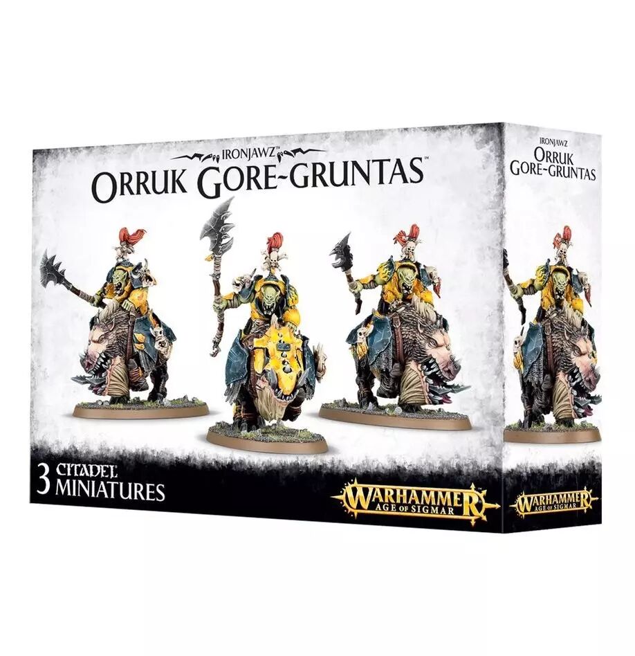 Bêtes porcines aussi volumineuses qu'irascibles, les Gruntas font preuve d'une force et d'une fureur que même les orruks respectent, et peuvent piétiner et dévorer bruyamment la plupart de ce qui peut leur faire obstacle – à la plus grande joie des Ironjawz qui tressautent gaiement sur leur dos aux senteurs envoûtantes. Les voraces Gruntas gobent pratiquement n'importe quoi, même du fer (pas vraiment par goût, mais parce que les victimes en portent sur elles) Les orruks récupèrent le métal régurgité ou excrété, dit mâchefer, pour en faire des armes et des armures. Une charge de Gore-gruntas lancée au bon moment peut défoncer l'armée ennemi dans le fracas des sabots, des défenses et des flatulences nauséabondes.