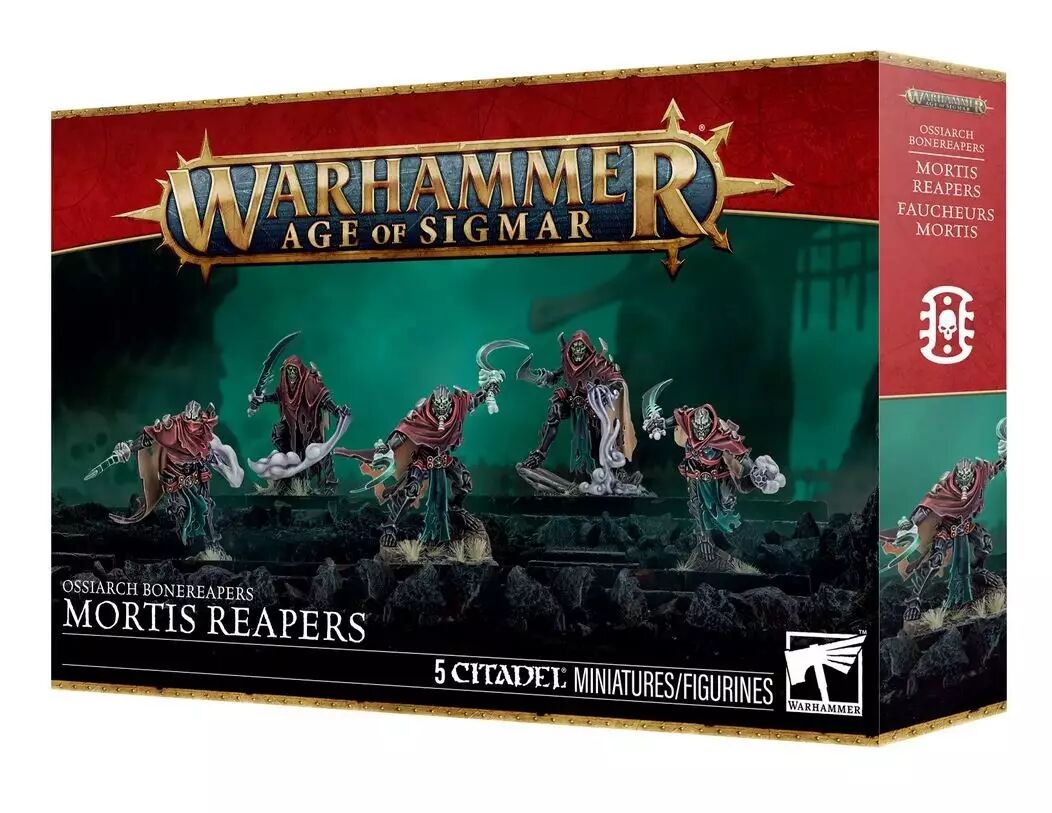 Réf. : 94-37 Les Faucheurs Mortis sont des assassins redoutés, à l'allure angoissante, se glissant entre les lignes ennemies afin d'en cibler les chefs vulnérables. Enveloppés d'une brume de chaleur grelottante et emportant avec eux des nécrocaches funestes, ils sont envoyés collecter une dîme d'os à laquelle nul ne peut échapper.