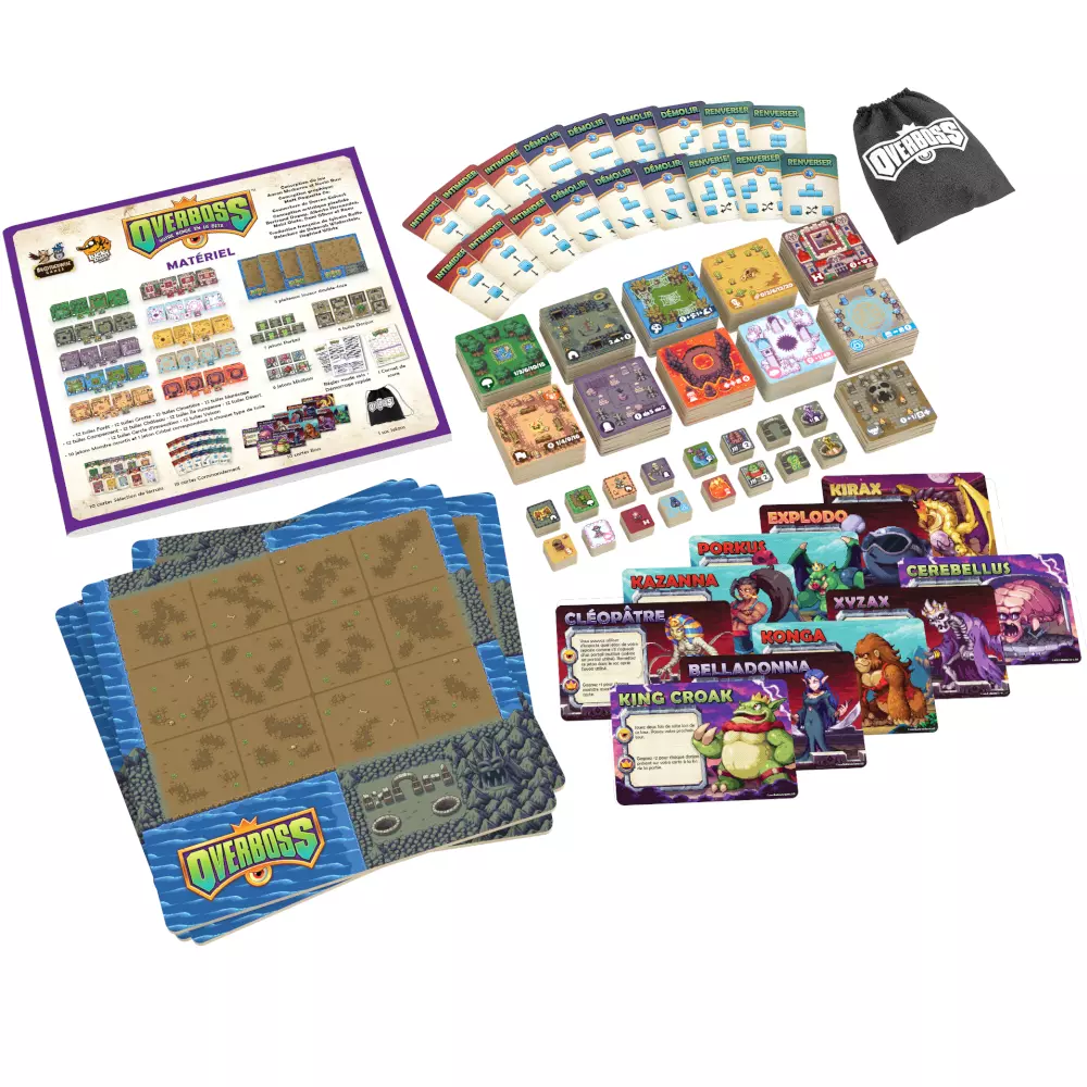 Dans Overboss, des Boss rivaux sortent de leurs donjons pour conquérir l’Overworld. À chaque tour, les joueurs draftent et placent des tuiles de terrain et des jetons de monstre. Leur objectif : créer la carte avec la plus grande puissance et devenir l’Overboss ultime !