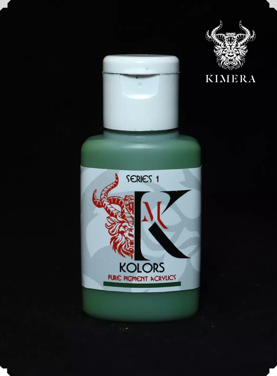 Réf. : KIMCOL27 Oxide Green : Un vert terreux, stable et très couvrant. Parfait pour les uniformes militaires historiques, la végétation dense ou comme base pour des effets de mousse et de lichen sur vos décors.