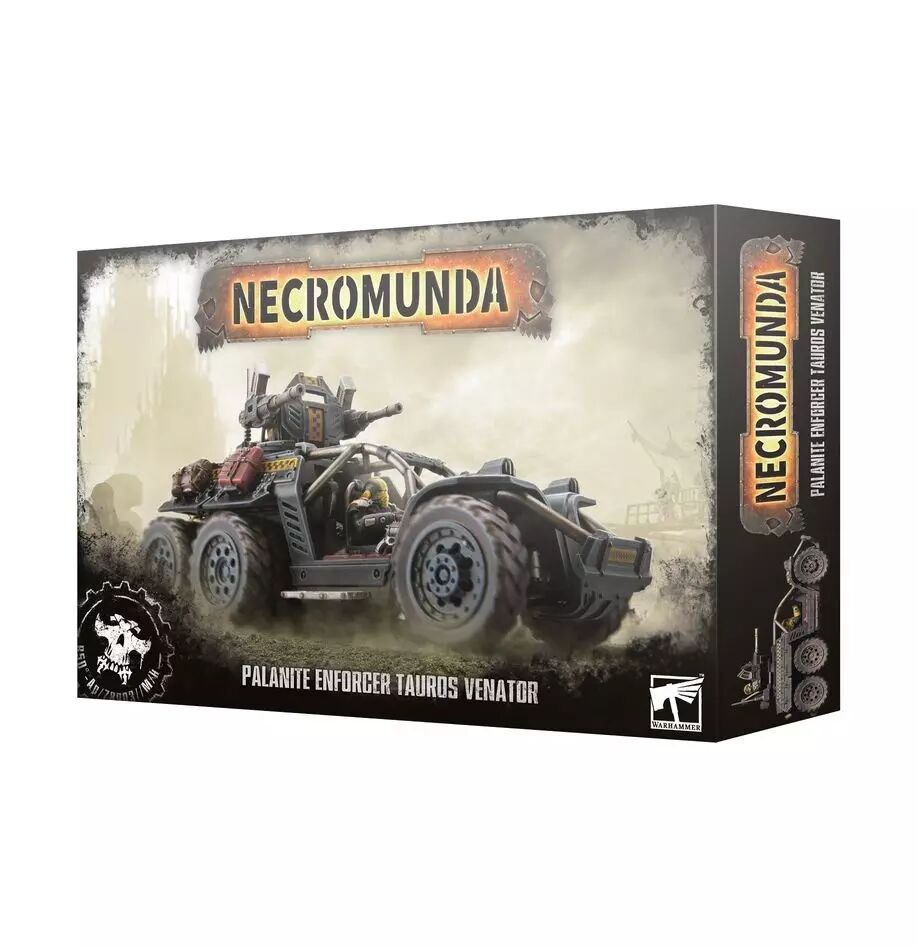 Le Tauros Venator est un véhicule tout-terrain, employé par les Palanite Enforcers en tant qu'intercepteur rapide idéal pour surveiller les routes qui strient les désolations de cendre de Necromunda. Les Enforcers n'ont qu'une présence limitée hors des cités-ruches. Ces véhicules rapides mais bien armés sont donc vitaux pour traverser les terres sauvages à grande vitesse et administrer une justice brutale sur ceux qui menacent les riches convois de guilde ou les respectables voyageurs habitants des ruches.