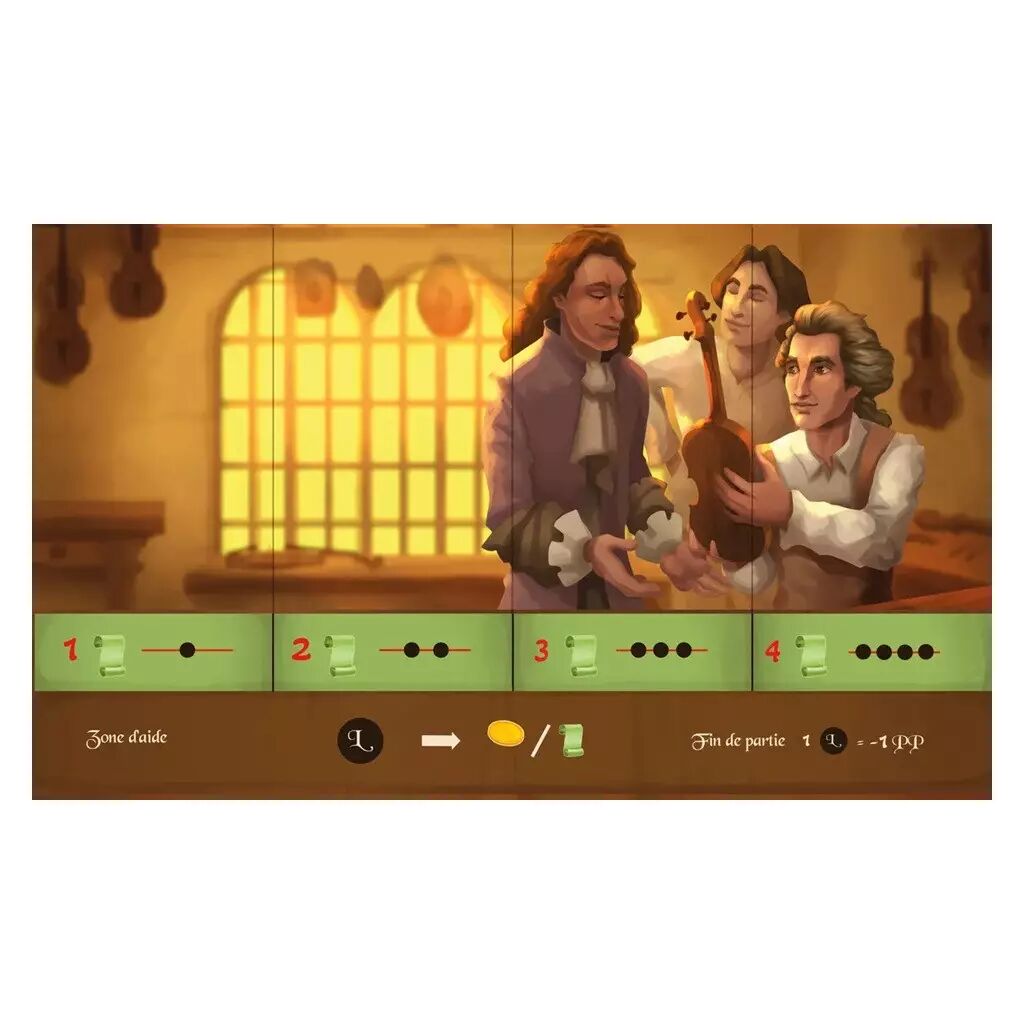 Ici, on ne se contente pas de pousser des cubes en bois, on vit le métier ! Ce qui frappe immédiatement, c'est la cohérence entre le thème et le gameplay. Vous devrez gérer votre stock de bois précieux (le fameux épicéa de la forêt de Paneveggio) et, détail génial, le faire vieillir dans votre atelier pour qu'il atteigne la résonance parfaite. C'est cette gestion du temps et de la maturation qui donne au jeu une âme particulière, loin des classiques tableaux Excel déguisés. On s'y croit vraiment, cherchant à épater les grands musiciens de l'époque.