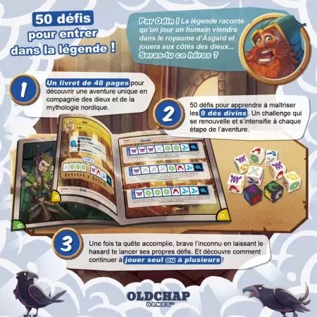 Réf. : OLD005OD Dans Par Odin, vous incarnez un guerrier humain venu accomplir 50 défis afin de s'asseoir à la table des dieux. Dans ce jeu solo, narratif et évolutif, vous allez, petit à petit, au gré des défis, découvrir la richesse mécanique du jeu et l'univers de la mythologie nordique.