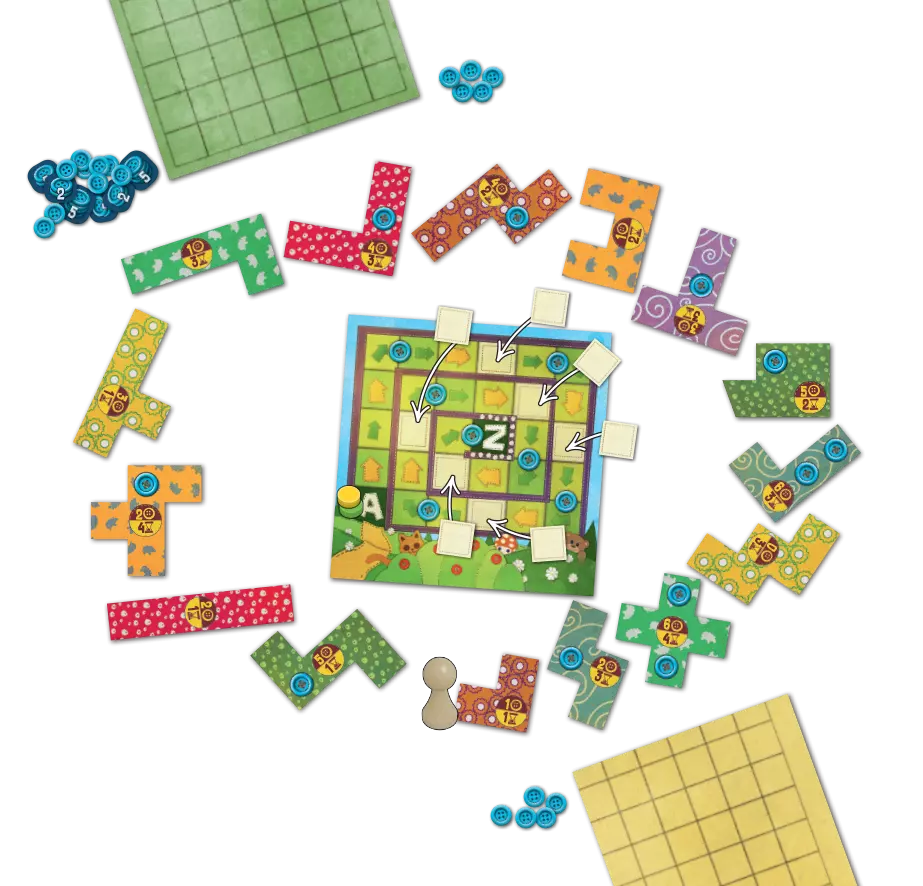 Patchwork Express reprend les bases de Patchwork en les simplifiant. Il est plus particulièrement conçu pour les enfants (mais pas seulement) et dispose de grosses tuiles et de plus petits nombres.
