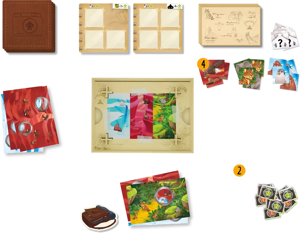 Si un animal apparaît partiellement ou entièrement dans les objectifs de votre carte Paysage, vous pouvez prendre la ou les tuiles Photo d'animaux correspondantes et les placer dans l'un de vos Albums photo en respectant les contraintes des Albums - uniquement des animaux de neige, par exemple.