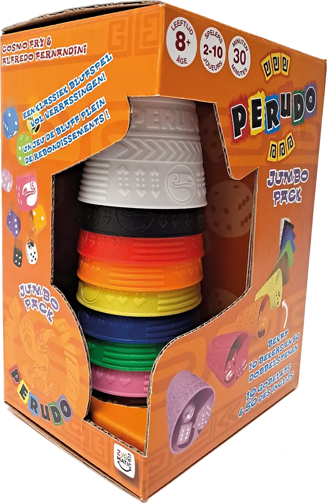 Réf. : PEJ01FRNL Parce que c'est un jeu où plus on est, plus c'est drôle, Perudo Jumbo permet de jouer jusqu'à 10 joueurs. Il contient donc le matériel nécessaire, mais aussi des variantes de règles spécifiques?! Tuskou, tujou?!