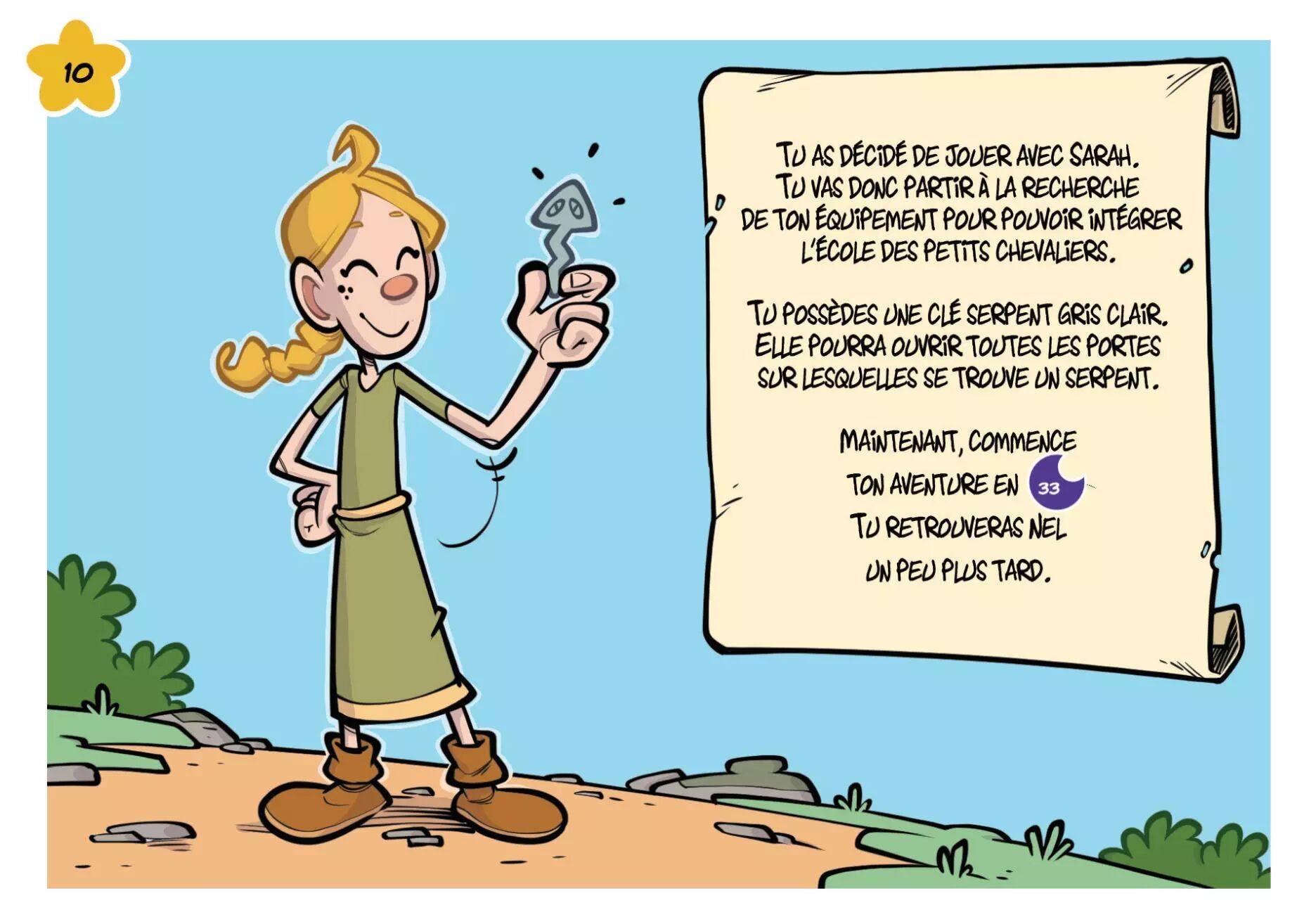 Petit lecteur, petite lectrice, deviens Nel ou Sarah le temps de cette aventure, observe, fouille, aide les habitants et réalise ton rêve de devenir chevalier…