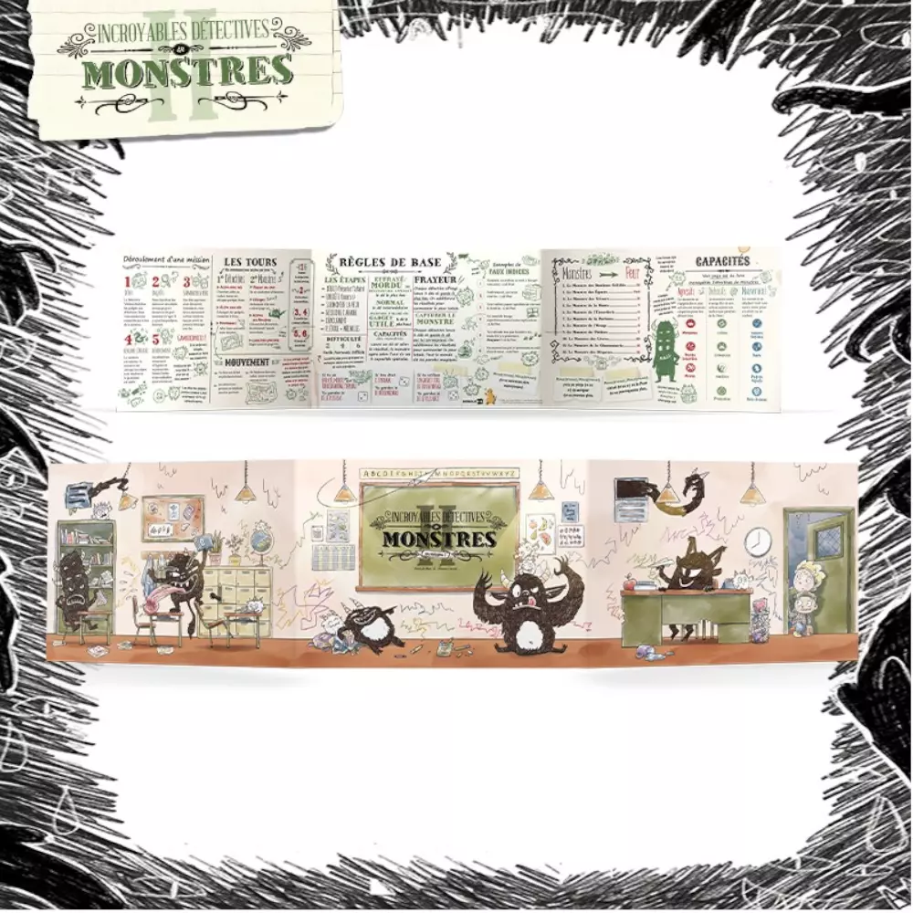 L’ECRAN DE JEU : L’illustration de Patricia de Blas de l’écran de jeu est une exclusivité La Loutre Rôliste pour immerger les joueurs dans l’ambiance : une salle de classe pendant la récréation avec ses Monstres qui s’amusent eux aussi !