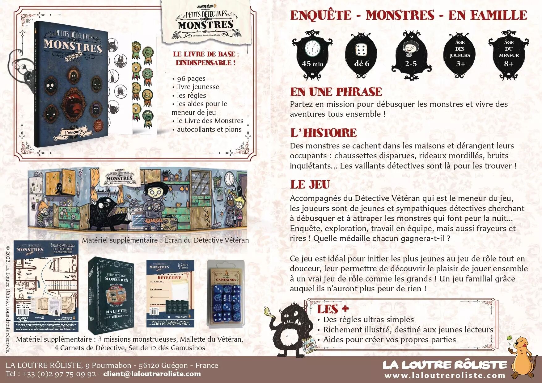 Le livre de base de Petits Détectives de Monstres contient tout le nécessaire pour commencer à jouer avec des enfants de 3 ans et plus.