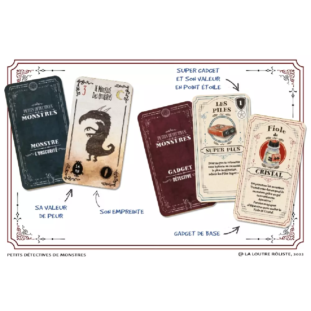 - 22 Cartes de Monstres avec leurs empreintes de pattes et leur valeur de Peur (ceux du livre de base + ceux de l'écran + le Monstre de Noël + 3 Gamusinos)