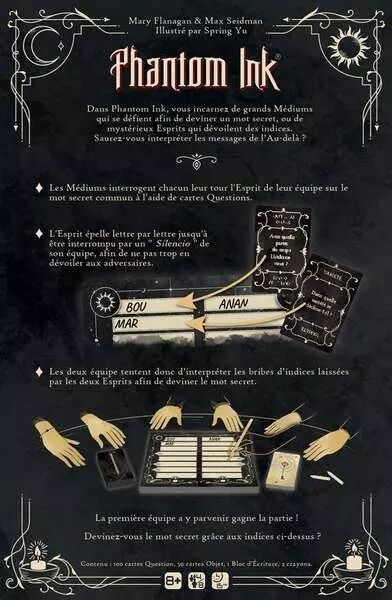 Chacun son tour, le fantôme de l'équipe donne des indices en répondant à une question secrète: il inscrit lettre à lettre sur le Bloc d'écriture le mot avant d'être stoppé par ses médiums le plus tôt possible pour ne pas donner d'indications à l'équipe adverse.