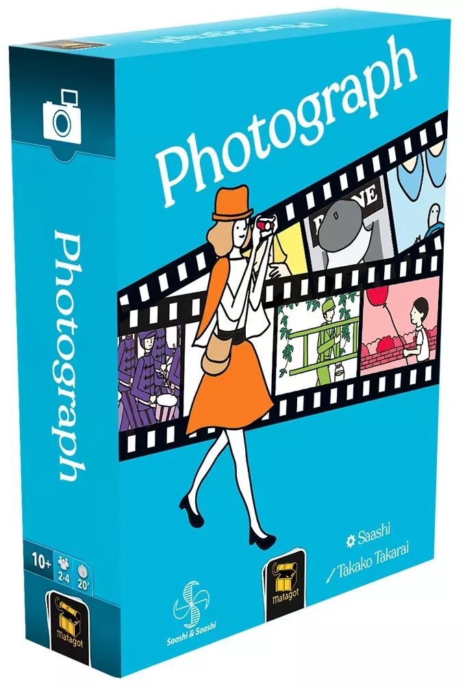 Réf. : MATPHO001600 Remake du célèbre jeu japonais Wind the Film, Photograph est un jeu de cartes dans lequel vous capturez des scènes de vie. Équipé de votre « demi format », un appareil photo en vogue dans les années 60 particulièrement au Japon, choisissez votre sujet, préparez votre pellicule et déclenchez l'obturateur au bon moment. Les photos s'assembleront pour former votre composition originale.