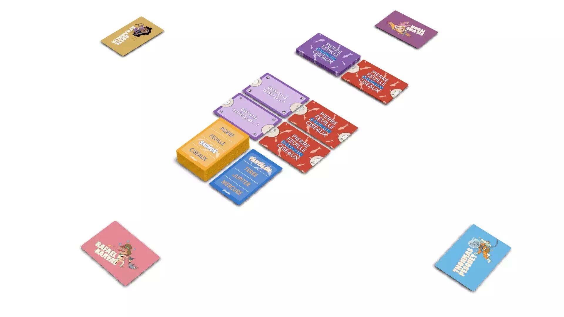 Chaque joueur pioche une carte comportant quatre mots – trois liés, un intrus. À tour de rôle, chacun lit ses mots à voix haute, puis le groupe devra répondre à des questions farfelues sur ce qui vient d’être dit. Attention : plus vous progressez, plus la difficulté augmente ! Chaque erreur vous rapproche du naufrage collectif.