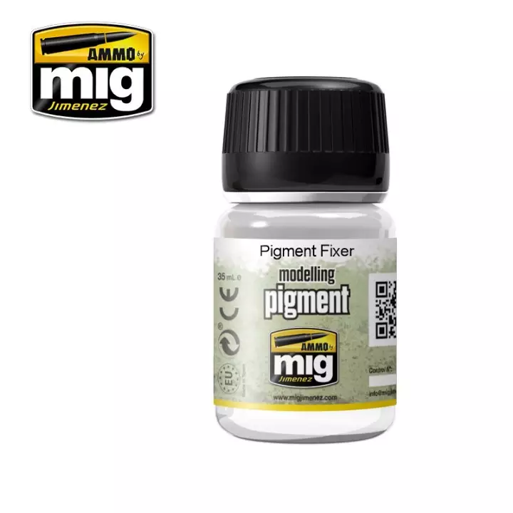 Le Pigment Fixer fait partie de l'arsenal chimique qu'Ammo Mig a perfectionné pour sécuriser le travail du modéliste. C'est un produit spécifique qui remplace avantageusement l'essence de pétrole ou les vernis dilués, souvent trop agressifs ou modifiant trop l'aspect visuel des poudres.