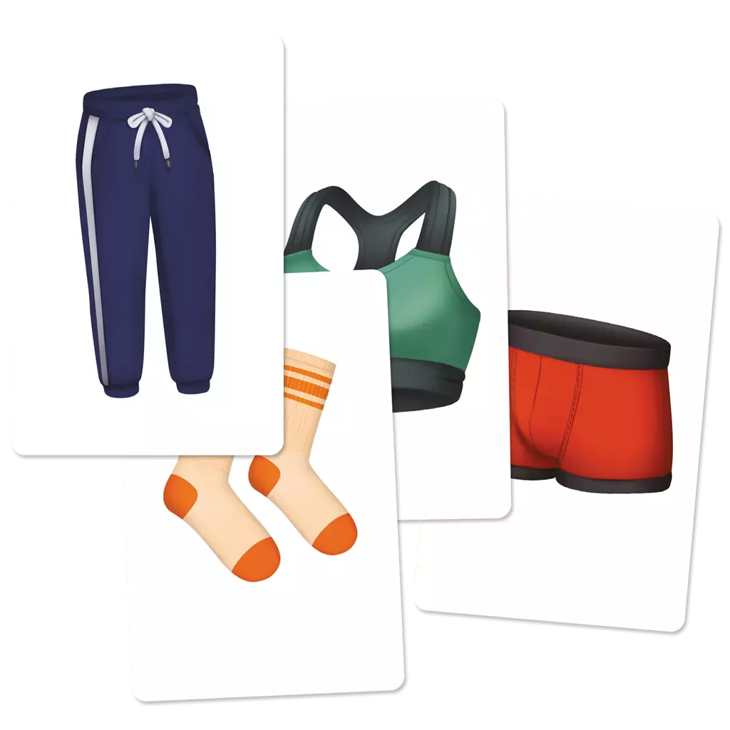 Chaque joueur possède 6 piles de cartes, faces cachées, devant lui. Au top départ, 4 cartes sont retournées face visible au centre de la table. Tout le monde joue en même temps. Prenez l’une de vos piles en main et regardez son contenu, vous pouvez échanger une carte de votre pile, face visible, contre n’importe quelle autre carte du centre de la table. Bien entendu tout le monde agissant de même, les cartes du centre vont changer en permanence et un joyeux chaos va régner. Dès que vous possédez une pile des 4 mêmes vêtements (mais de couleurs différentes), laissez-la face visible devant vous. Quand un joueur a réussi à constituer 6 piles, il crie Pile ! On vérifie, et s’il ne s’est pas trompé, il remporte la partie.
