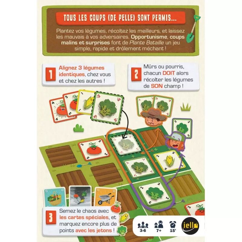 Plante bataille est un petit jeu de stratégie légumesque, dans lequel vous devez organiser vos plantations de sorte à ce qu’elles vous rapportent davantage de points qu’à vos adversaires.