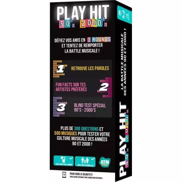 Play Hit vous transporte au cœur des décennies 90 et 2000, en vous faisant redécouvrir les chansons qui ont marqué ces époques. En équipe, vous serez confrontés à des défis variés mettant à l'épreuve votre mémoire et votre culture musicale. Les épreuves s'enchaînent, rendant chaque partie dynamique et pleine de surprises.