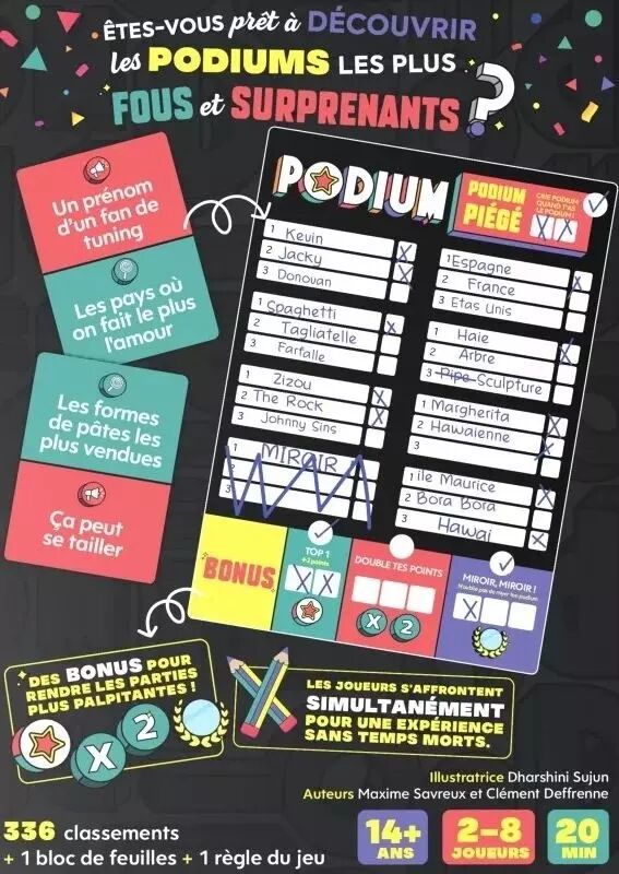 Munis de votre stylo et d’une feuille de score, vous tentez de deviner le Top 3 des classements qui s'offrent à vous.