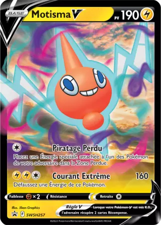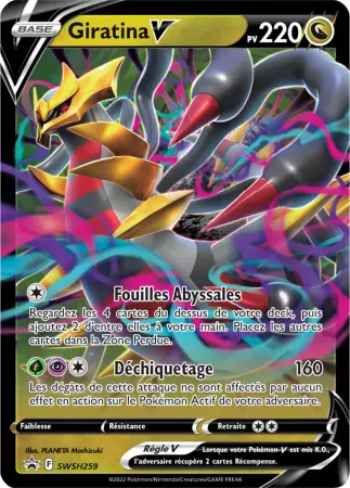 Contient 1 carte promo brillante de Giratina-V, Motisma-V ou Gallame-V, 4 boosters du JCC Pokémon, 1 carte à code pour le JCC Pokémon Live.
