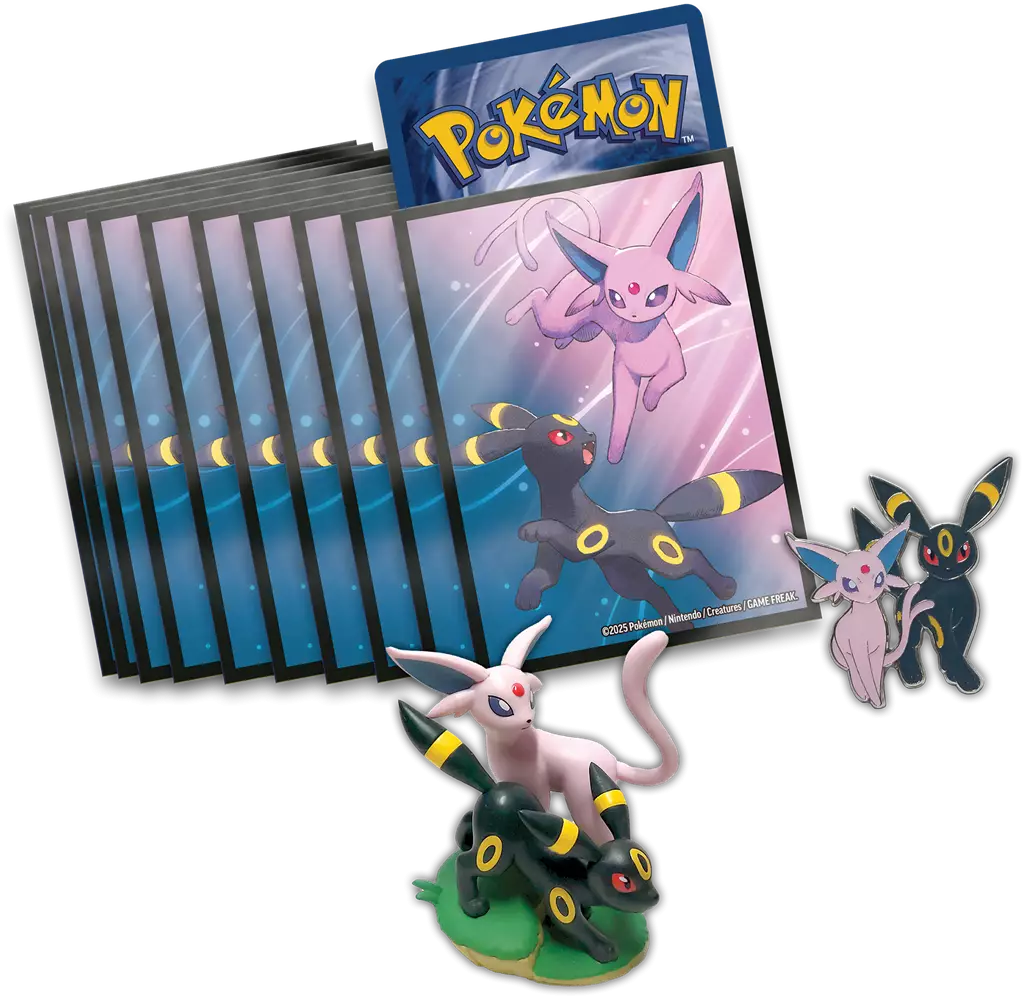 Voici en détails les éléments inclus dans le futur coffret Pokémon EV8.5 de la Collection Premium Figurine Mentali et Noctali de septembre 2025 :