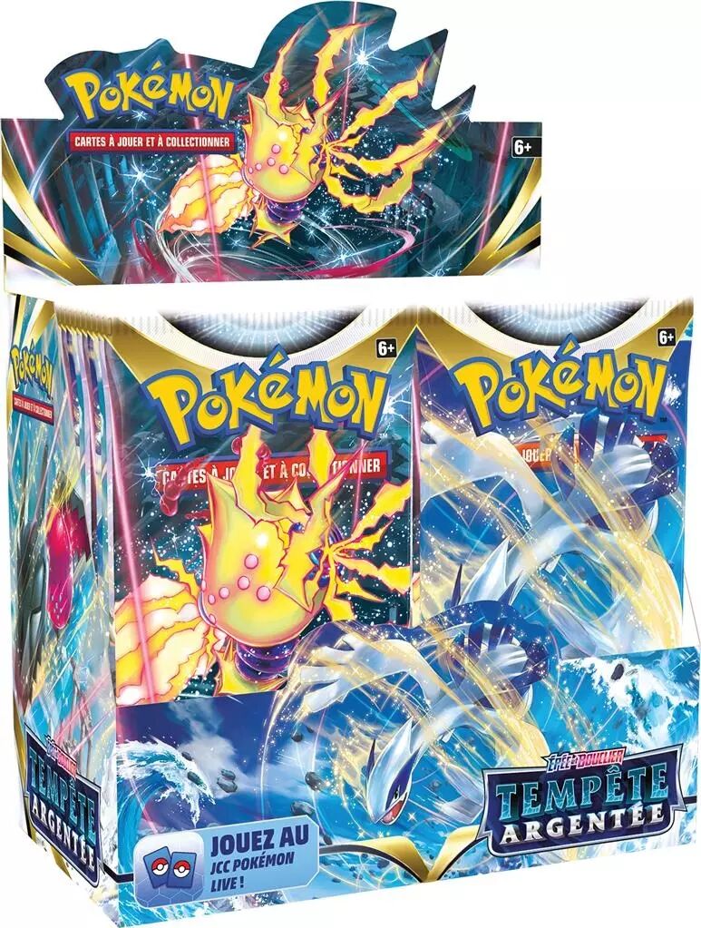 Chaque booster Pokémon Pokémon Epée et Bouclier Tempête Argentée contient 10 cartes. Un inquiétant grondement se fait entendre au loin... Lugia-VSTAR émerge des profondeurs de l’océan et répond à l’appel ! Des terres inexplorées attendent d’être découvertes aux côtés de Goupix d’Alola-VSTAR, tandis que Majaspic, Zarbi et Mysdibule se joignent à l’expédition en tant que Pokémon-VSTAR. Un combat légendaire est sur Le point d’éclater alors que Regieleki-VMAX et Regidrago-VSTAR sortent tout juste de leur torpeur. Découvrez de puissantes amitiés dans la Galerie des Dresseurs, et place à l’aventure avec l’extension Épée et Bouclier - Tempête Argentée. Un combat légendaire est sur le point d’éclater alors que Regieleki-VMAX et Regidrago-VSTAR sortent tout juste de leur torpeur. Découvrez de puissantes amitiés dans la Galerie des Dresseurs, et place à la grande aventure avec l’extension Épée et Bouclier – Tempête Argentée du JCC Pokémon !