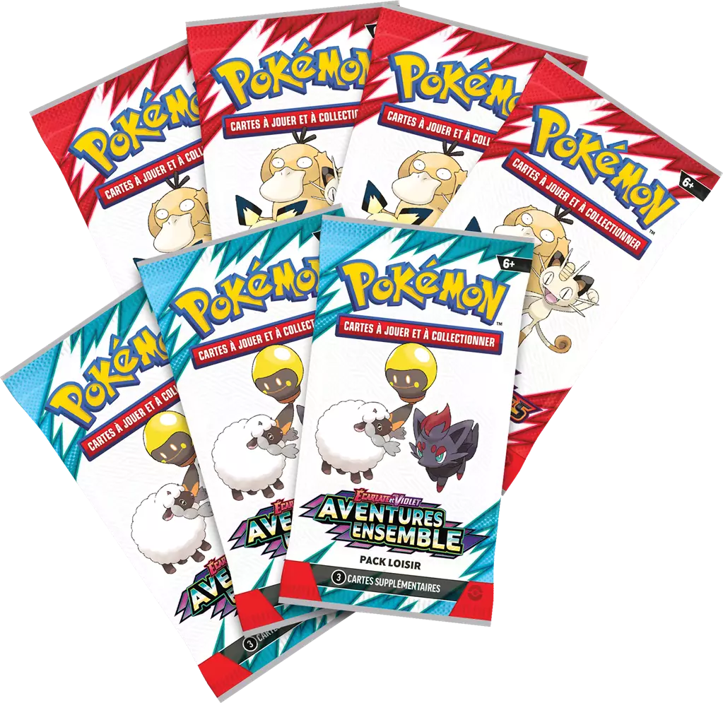 6 boosters de diverses extensions récentes du JCC Pokémon.