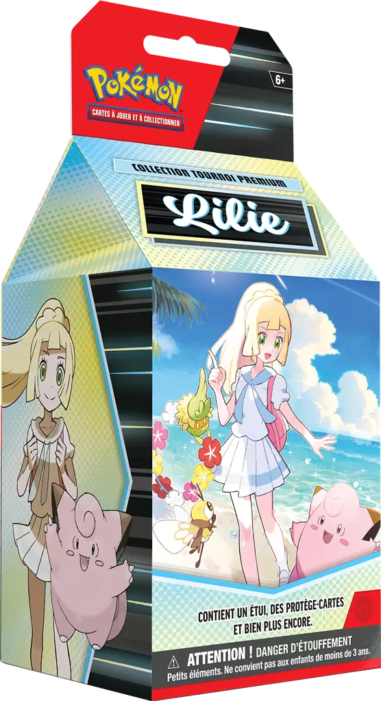 Pokémon Collection Tournoi Premium Lilie. Lilie est un personnage présent dans les jeux « Pokémon Soleil et Lune » et leurs versions améliorées, ainsi que dans la série animée basée sur la région d’Alola. Initialement l’assistante du Professeur Euphorbe, elle a une mission personnelle de protéger le Pokémon Cosmog, surnommé « Nebby ». À travers l’histoire, Lilie se développe personnellement, passant de réservée à confiante et courageuse, et devient une amie proche du protagoniste. Dans l’anime, elle est une camarade de classe de Sacha, affichant une évolution similaire malgré quelques différences dans son histoire personnelle.