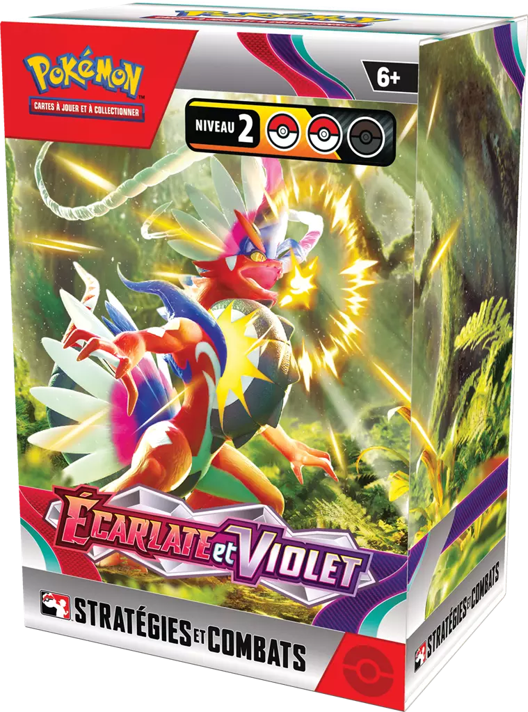 2 Boîtiers Stratégies et Combats individuels, contenant chacun un deck de 40 cartes prêt à jouer et 4 booster par boîtiers.