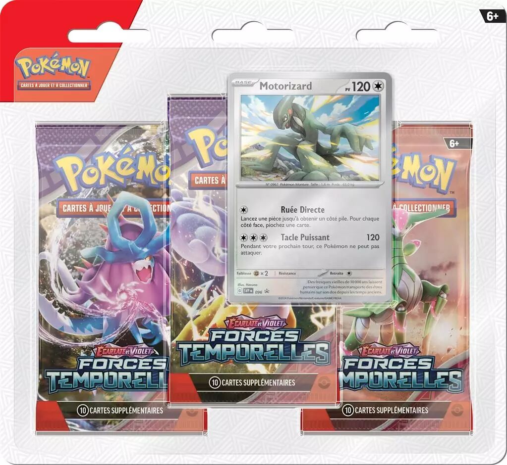 À l’extérieur de la Zone Zéro, Triopikeau et Farigiraf changent de type en tant que Pokémon-ex Téracristal, et les Dresseurs et Dresseuses Pokémon du monde entier se préparent pour le retour des cartes HIGH-TECH aux effets puissants et uniques. Une brèche temporelle s’est ouverte, amenant avec elle des bêtes sauvages et des créatures futuristes dans l’extension Écarlate et Violet – Forces Temporelles du JCC Pokémon !
