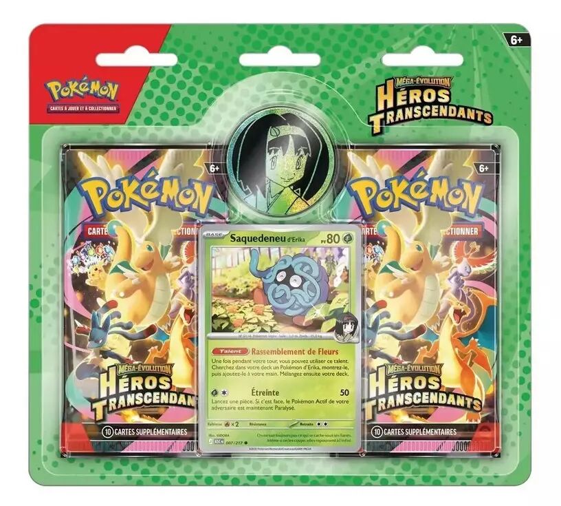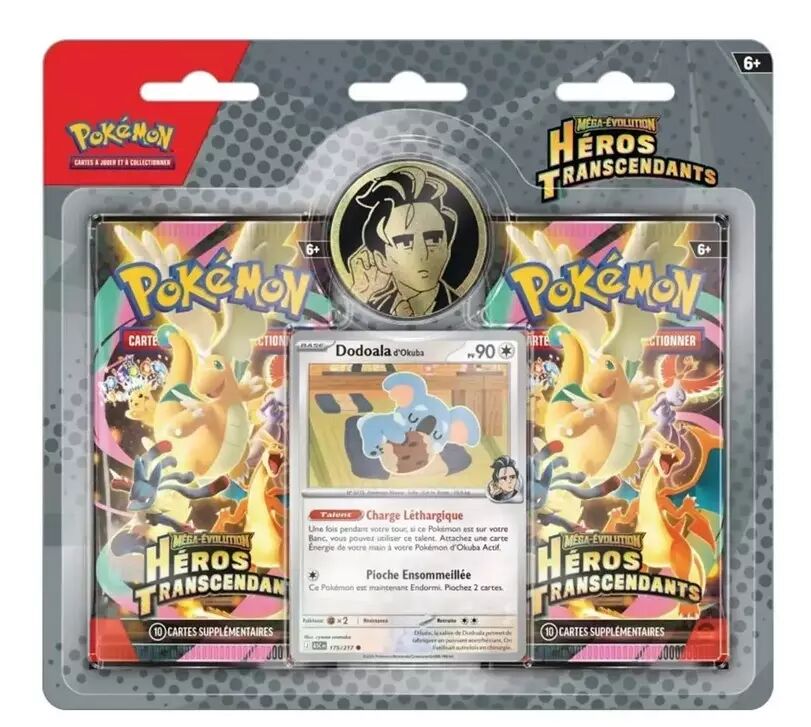 L'aventure continue avec ce pack spécialement conçu pour les dresseurs impatients. Ce format "Duo" regroupe deux boosters scellés de l'extension Héros Transcendants (ME02.5), une série déjà incontournable pour tout collectionneur qui se respecte.